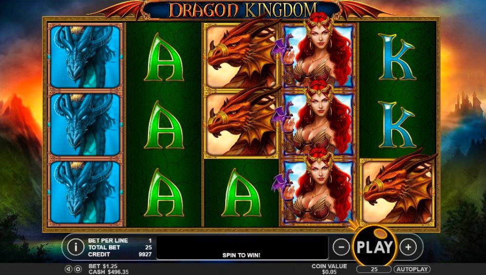 Every epic quest starts with a single step and when you play the Dragon Kingdom slot game that means setting your bets using two variables – lines and line bets. Once you’ve picked your stakes, the price per spin is determined by the sum of your lines and bet per line